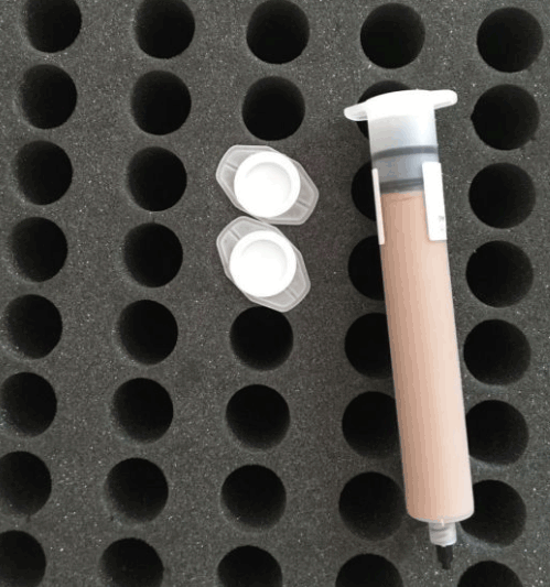 導電膠水主要由樹脂基體、導電粒子和分散添加劑、助劑等組成.市場上使用的導電膠水大都是填料型。填料型導電膠水的樹脂基體,原則上講,可以采用各種膠勃劑類型的樹脂基體,常用的一般有熱固性膠黏劑如環氧樹脂、有機矽樹脂、聚酰亞胺樹脂、酚醛樹脂、聚氨酯、丙烯酸樹脂等膠黏劑體係.這些膠黏劑在固化後形成了導電膠水的分子骨架結構,提供了力學性能和粘接性能保障,並使導電填料粒子形成通道.由於環氧樹脂可以在室溫或低於150℃固化,並且具有豐富的配方可設計性能,環氧樹脂基導電膠水占主導地位。