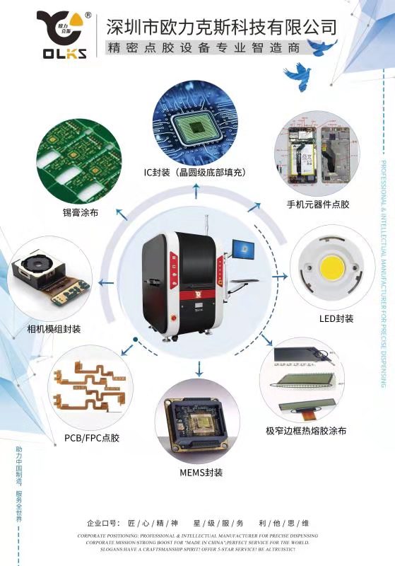 移動設備的攝像頭模塊必須非常薄。采用倒裝芯片技術,將圖像傳感器連接到空腔互連框架中,以減少厚度。然後在圖像傳感器與幀之間的間隙中填充欠填充材料。由於空腔結構的原因,間隙相當緊密。配藥的挑戰變成小點尺寸,配藥位置的準確性和生產力。
